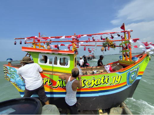Nelayan Desa Limbangan Kecamatan Juntinyuat menggelar tradisi Nadran atau pesta laut, Rabu (15/4/2026). Tradisi masyarakat pesisir tersebut dilestarikan hingga generasi kini.